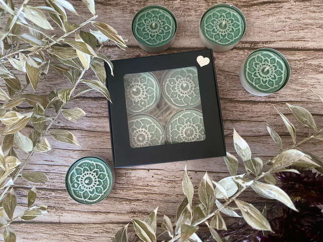 Hallo, wir sind deine Mandala-Teelichter – kleine Lichtkunstwerke für Momente der Ruhe und Achtsamkeit! Mit filigranem Mandala-Muster, feinem silbernem Glitzer und dem wohltuenden Duft von Eukalyptus, Kaschmir & Patschuli bringen wir sanften Zauber in dein Zuhause. Perfekt für entspannte Abende, kleine Auszeiten oder als stilvolles Geschenk, das von Herzen kommt. Lass uns dein Lichtmoment erhellen – wir sind bereit, dein Zuhause sanft zum Strahlen zu bringen ✨
