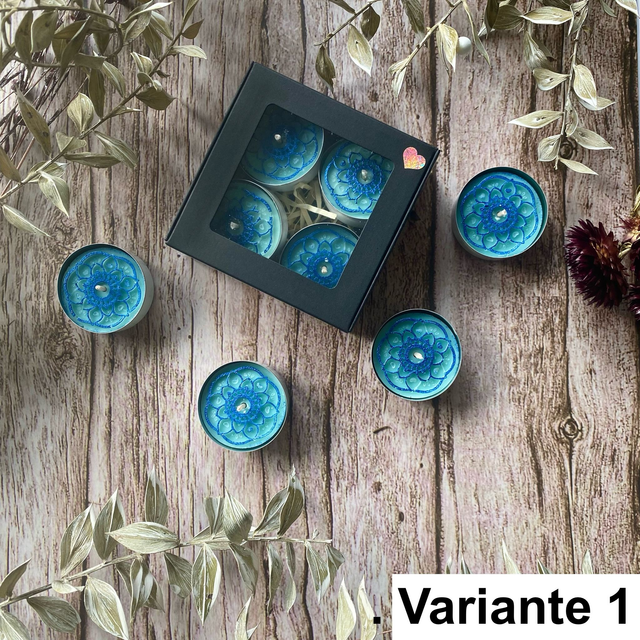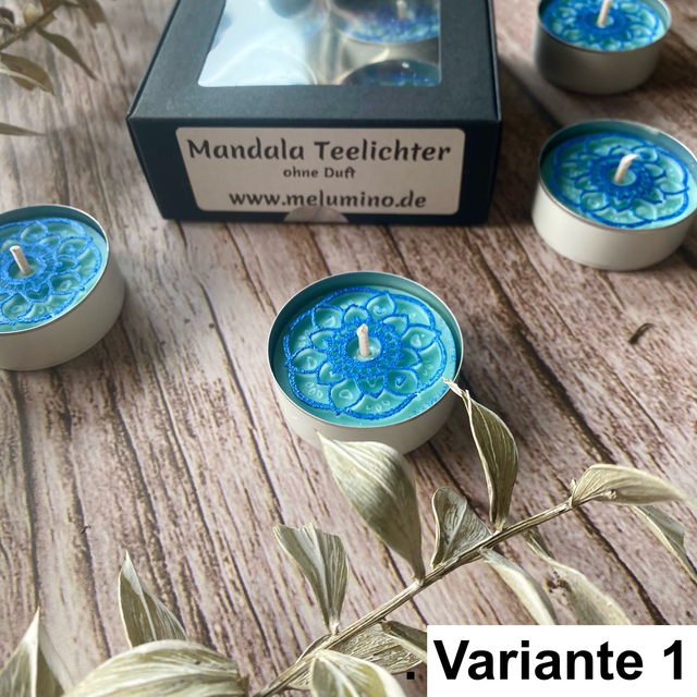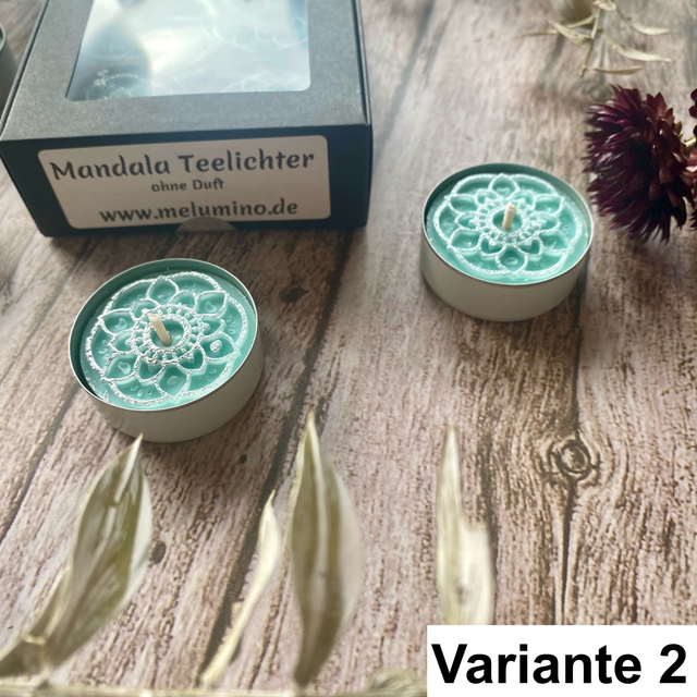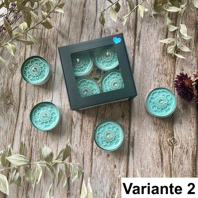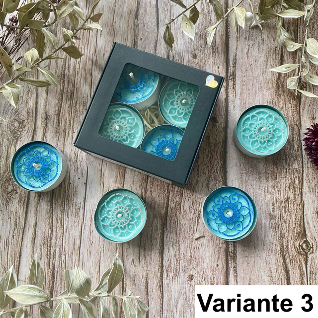Hallo, wir sind deine Mandala-Teelichter – kleine Lichtkunstwerke für Momente der Ruhe und Achtsamkeit! Mit liebevoll gestaltetem Mandala-Muster und silbernem Glitzer bringen wir sanften Zauber in dein Zuhause. Perfekt für entspannte Abende, kleine Auszeiten oder als stilvolles Geschenk für Herzensmenschen. Unser zartes Türkis erinnert an Harmonie und Balance – ganz ohne Duft, ganz pur. Erhältlich als 4er-Set in einer zauberhaften Geschenkbox. Preis pro 4 Stück: 9,00 €. Lass uns deinen Lichtmoment erhellen – wir sind bereit, dein Zuhause sanft zum Strahlen zu bringen ✨
