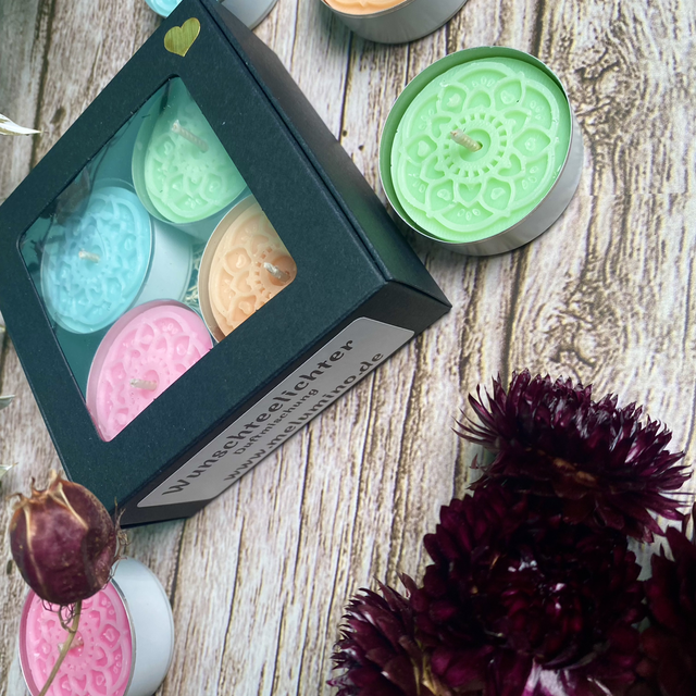 Wunschteelichter Sets mit Sprüchen und 4 tollen Düften